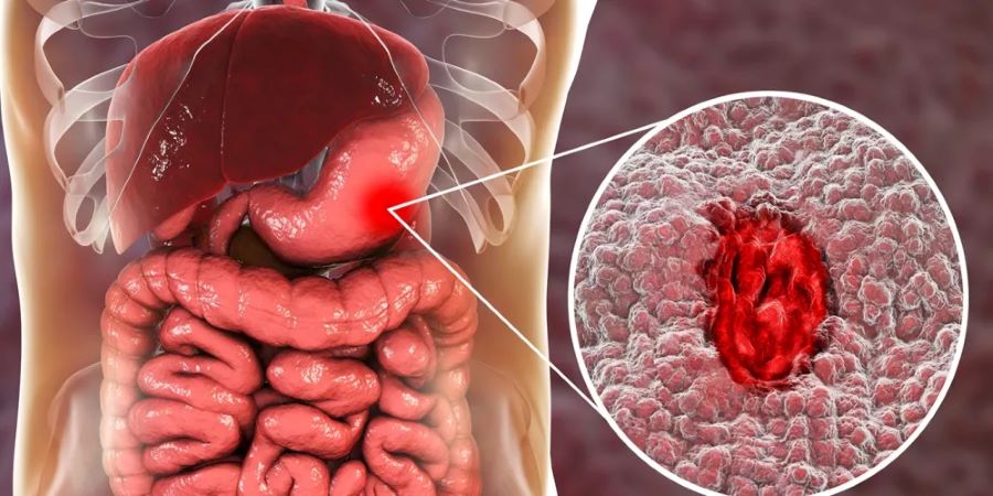 وتوصلت آخر الدراسات إلى أن قرحة المعدة قد تتسبب باستهلاك الجدار الداخلي للمعدة، مما يؤدي إلى تكسّر الأوعية الدموية وظهور النزيف الذي يسبب فقدان كميات كبيرة من الدم، ومن الممكن أن يكون النزيف خطيرًا، ومن الأعراض المصاحبة للنزيف نذكر: الألم في الجزء العلوي من البطن، الشعور بالغثيان واستفراغ مادة شبيهة بالقهوة، خروج البراز بلون داكن.